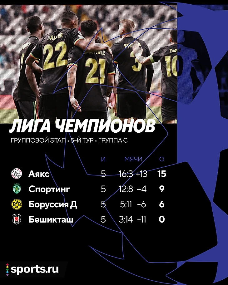 Тут «Аякс» разорвал всех и еще до паузы на сборные гарантировал плей-офф. В этом туре забронировали и первое место, обыграв «Бешикташ» – Себастьяну Аллеру хватило одного тайма, чтобы забить два гола и догнать Роберта Левандовского в гонке бомбардиров.