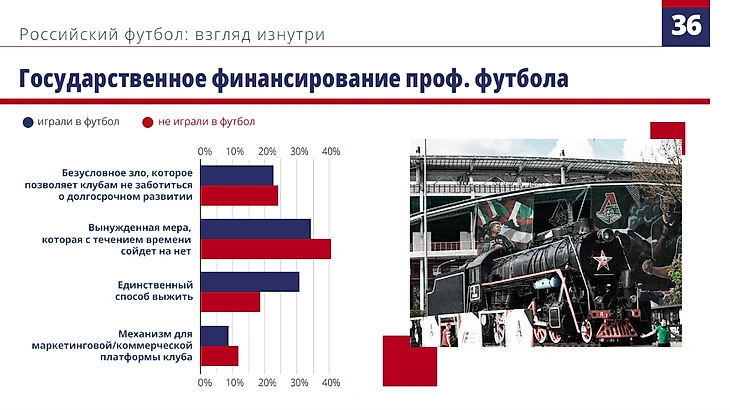 20% все еще не верит, что футбол может быть самоокупаемым. Не более 20% считают госфинансирование злом