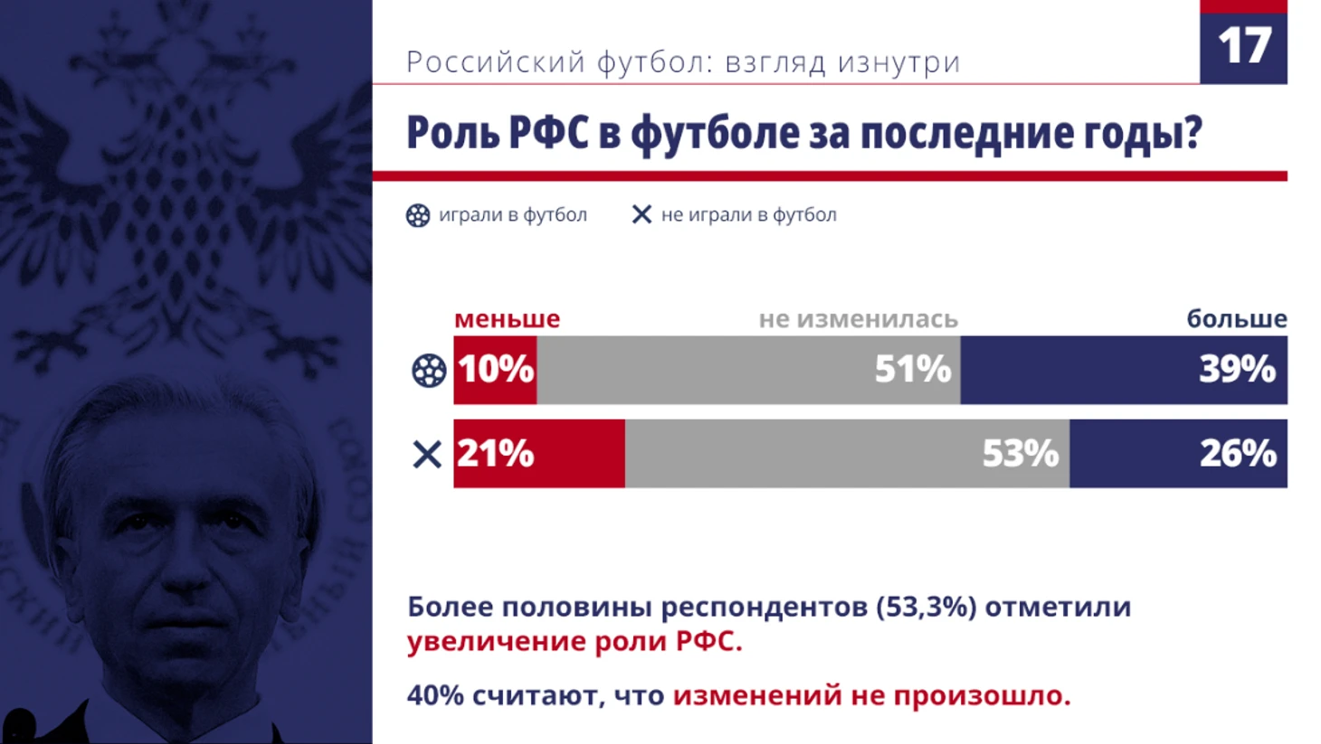Большинство не считает,что РФС стал влиятельнее, но положительно оценивает изменения