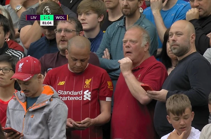 Весь матч камеры выхватывали на трибунах болельщиков «Ливерпуля», которые проверяли счет в матче «Ман Сити» и «Астон Виллы» – там Стивен Джеррард и Коутиньо давали надежду.