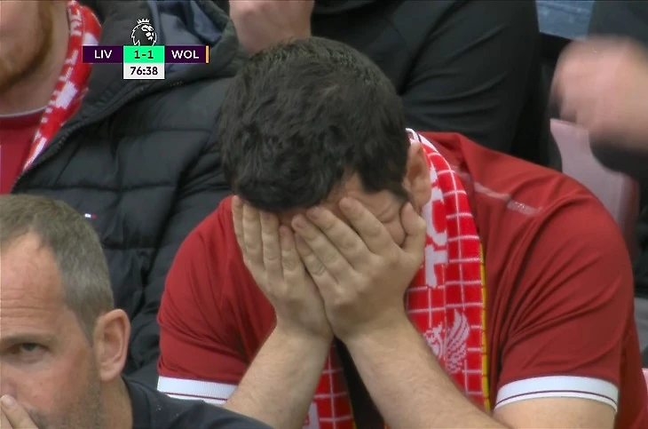 Лица болельщиков на «Энфилде» – 😢. Пережили всю боль