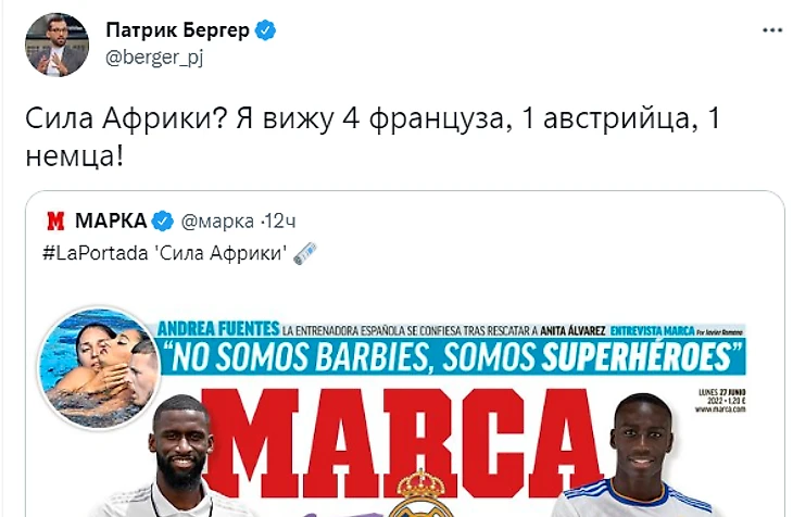 «Сила Африки? Я вижу четырех французов, австрийца и немца!» – отреагировал главный редактор немецкого Sport1 Патрик Бергер.