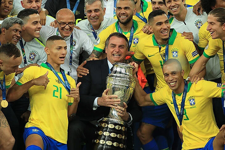 И еще деталь: бразильцы перед ЧМ не так охотно покупают желтую форму сборной, потому что она ассоциируется с Болсонару и его сторонниками. Дело в том, что в 2014-м по стране прошли протесты против президента Дилмы Руссеф (она представляла левую партию) – бастующие вышли на митинги в форме сборной. Потом этот трюк в предвыборной кампании использовал и Болсонару.