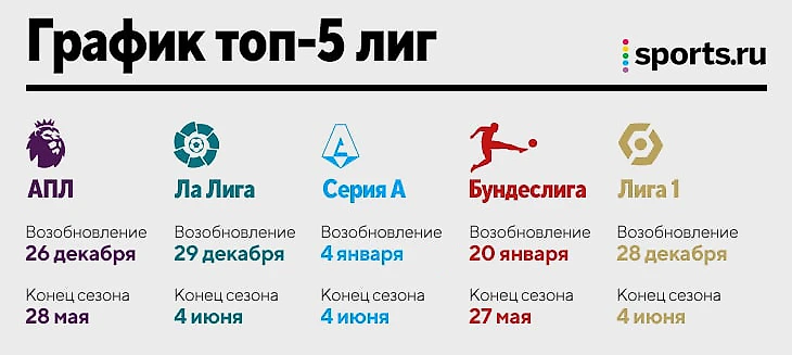 Многие игроки еще отдыхают после чемпионата мира, некоторые празднуют, но почти все топ-лиги Европы все равно готовы к рестарту. Большая новогодняя пауза только в Германии.