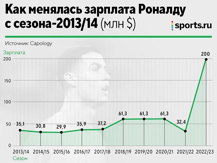 Вот как менялась зарплата Криштиану с сезона-2013/14: