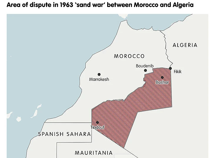 • Осенью 1963 года обстановка на границе резко обострилась из-за претензий Марокко на территорию в Алжире – начались полномасштабные боевые действия. Марокко углубился в Алжир на 100 километров, но вскоре стороны отвели войска и граница осталась прежней.