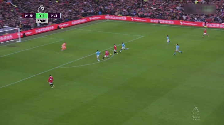 На 78-й минуте Каземиро запустил Рэшфорда за спины защитникам «Ман Сити». Проблема в том, что Рэшфорд находился в очевидном офсайде – даже без специальных ракурсов заметно, что он на несколько корпусов обходит игроков соперника.