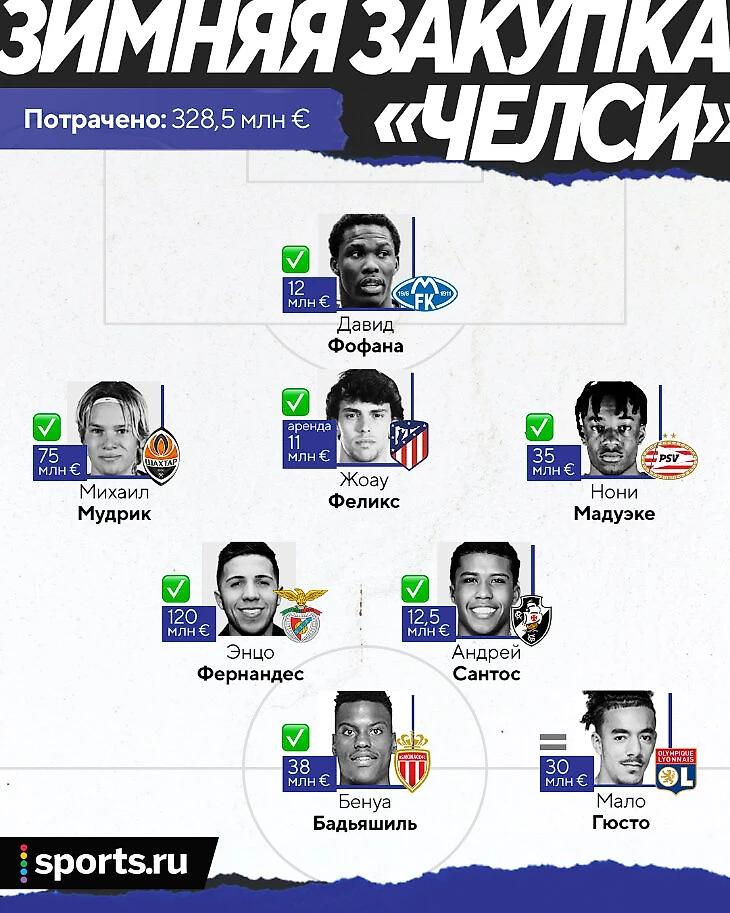 «Челси» разорвал трансферный рынок. Американский владелец Тодд Боули штамповал трансферы, полностью пересобрал состав и в последний момент урвал Энцо Фернандеса за 120 млн евро.