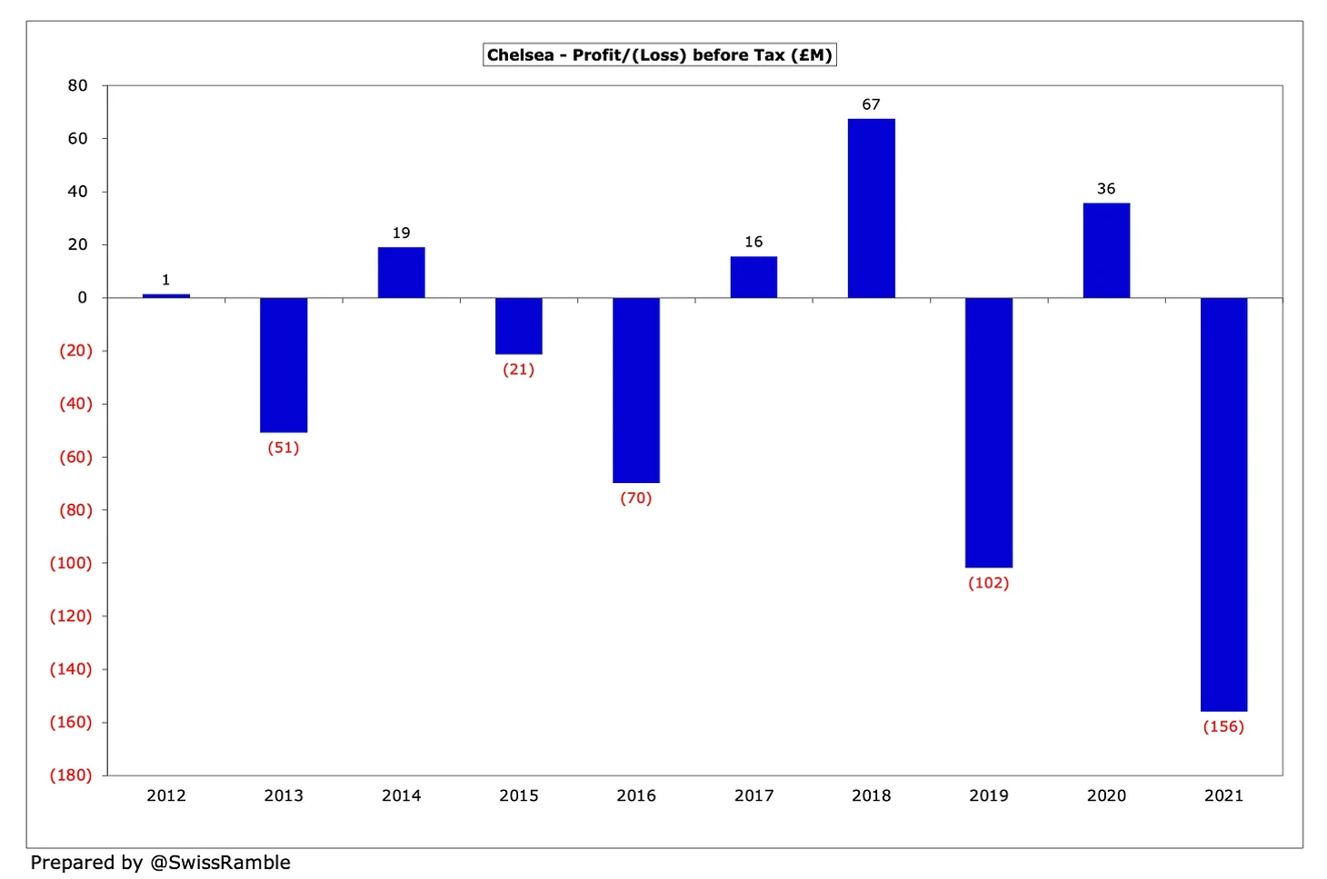 Недавно Swiss Ramble подготовил подробнейший финансовый отчет по «Челси» за последние несколько лет. Согласно нему, «Челси» получал хорошую прибыль за счет продаж игроков, которые позволяли клубу отчитываться о предналоговой прибыли 5 раз за последние 10 лет.