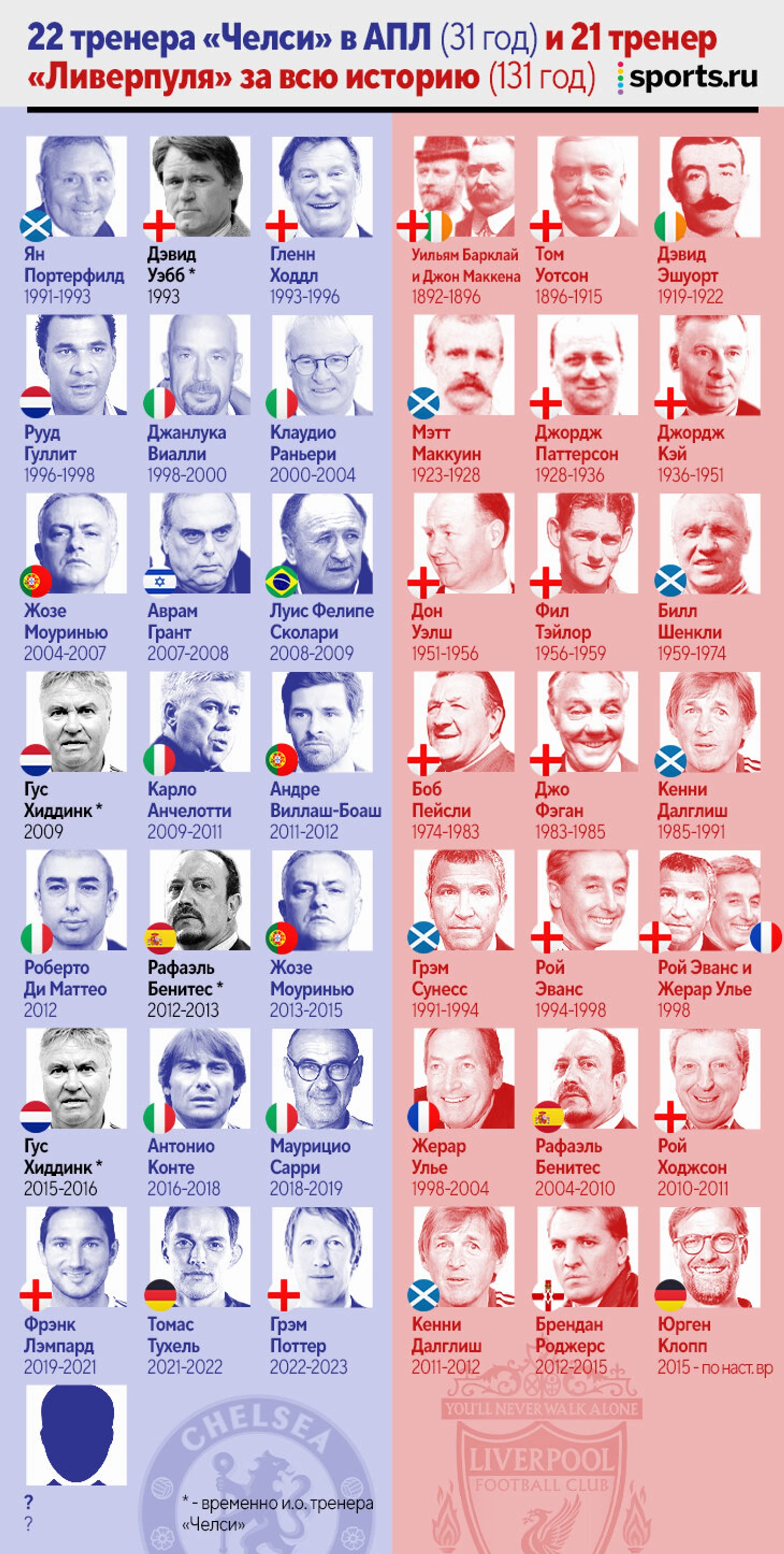 У «Челси» больше тренеров за 31 год, чем у «Ливерпуля» за 131! То есть за всю историю