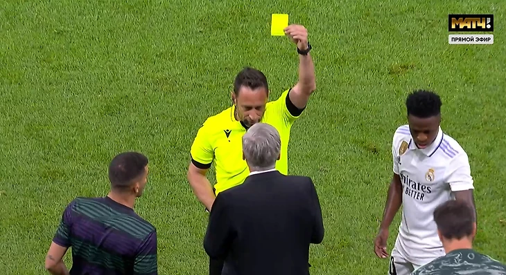 Анчелотти же после этого момента поспорил с судьей и получил желтую карточку.