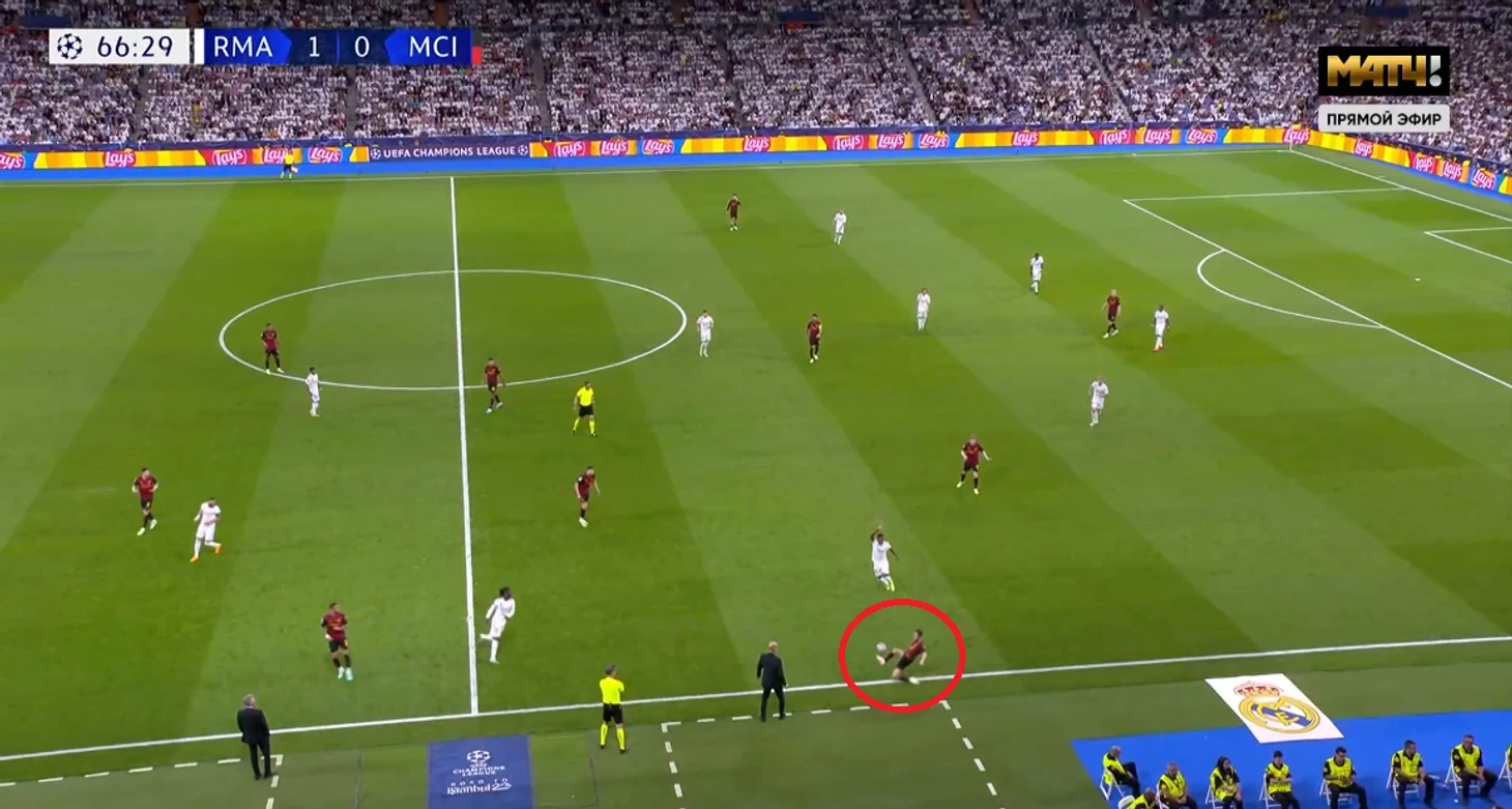 На 67-й минуте Де Брюйне все-таки пробил Куртуа – да еще и в стиле «Реала» (казалось, уже испанцы контролировали игру). Камавинга отдал в борьбу, «Сити» перехватил, Гюндоган скинул под удар Де Брюйне, который уложил мяч в нижний.