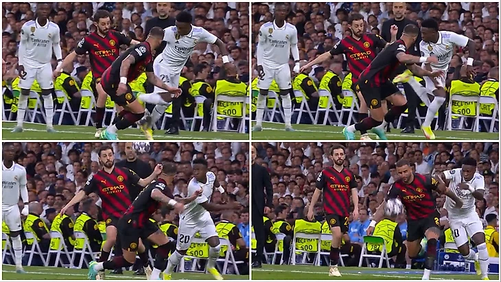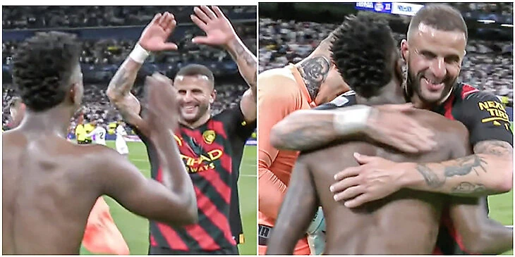 А еще Винисиус попытался исполнить популярный финт, подбрасывая мяч двумя ногами над Кайлом Уокером. Но англичанин не поддался.