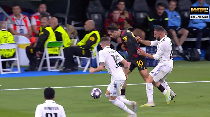 «Реал» отвечал опасными резкими выпадами: например, Бензема вырывался один на один, но Эдерсон был раньше на мяче. Потом после сверхопасного прострела Винисиуса выручил Диаш – Бензема мог оказаться перед пустыми воротами.