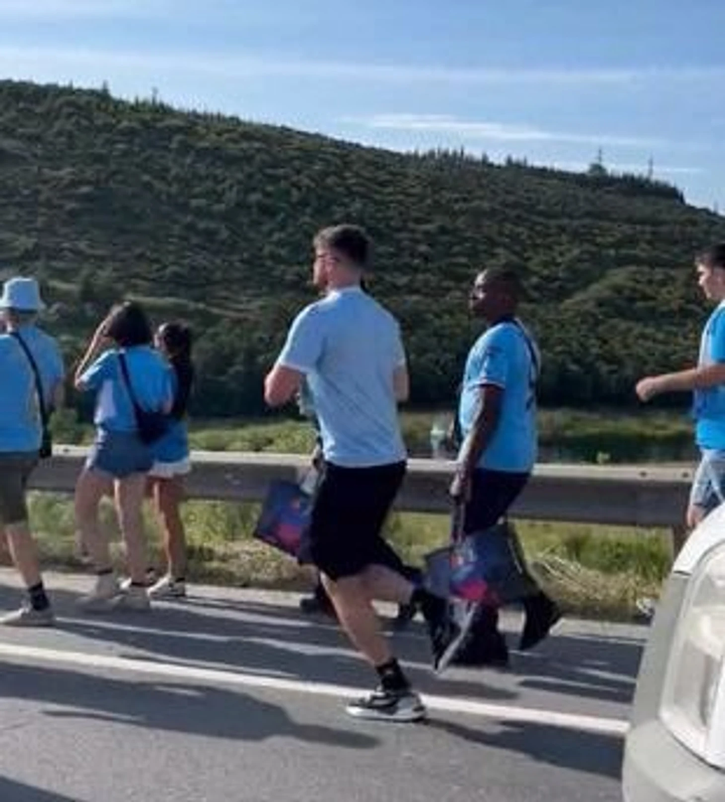 Мы слышали, что на игру задержался автобус «Манчестер Сити», но он с сопровождением-то прорвался через трафик, а вот некоторым болельщикам стало ясно: пробки такие, что проще пройти вдоль дороги пешком несколько километров.