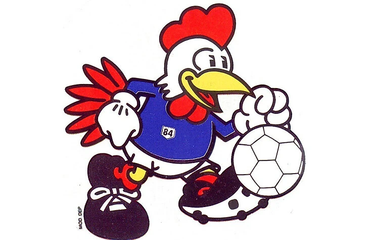 • На ЧЕ-1984 во Франции гостей встречал петух Пено в цветах хозяев. Выбор формы принес удачу – французы выиграли турнир, обыграв испанцев в финале (2:0).