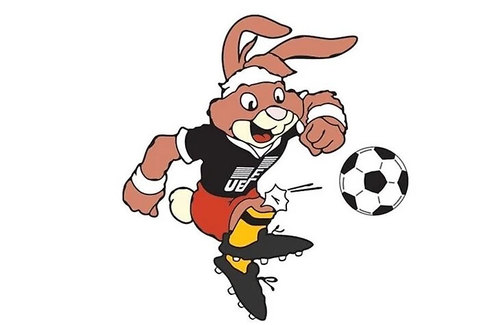 • ЧЕ-1988 проходил в Германии – маскотом стал кролик Берни. Его имя отсылало к швейцарскому городу Берн, где располагалась штаб-квартира УЕФА. Немецкий футбольный союз описывал Берни как приятного и азартного футбольного фаната. Азарт в глазах, да.