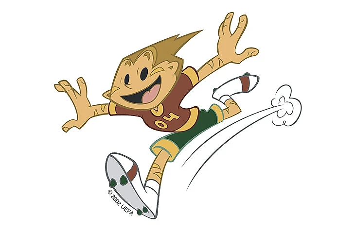• Евро-2000 впервые проходил в двух странах (Бельгии и Нидерландах), поэтому для него придумали двойного маскота. Это гибрид черта и льва Бенилаки – в имени обыграли Бенилюкс (союз Бельгии, Нидерландов и Люксембурга) и английское слово lucky («везучий»).