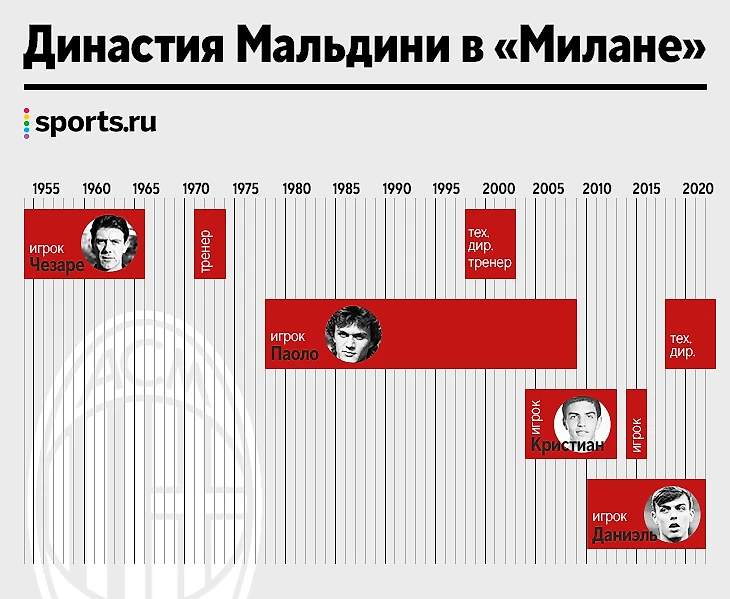 • Династия началась с Чезаре Мальдини, который побывал и игроком, и тренером, и техническим директором.