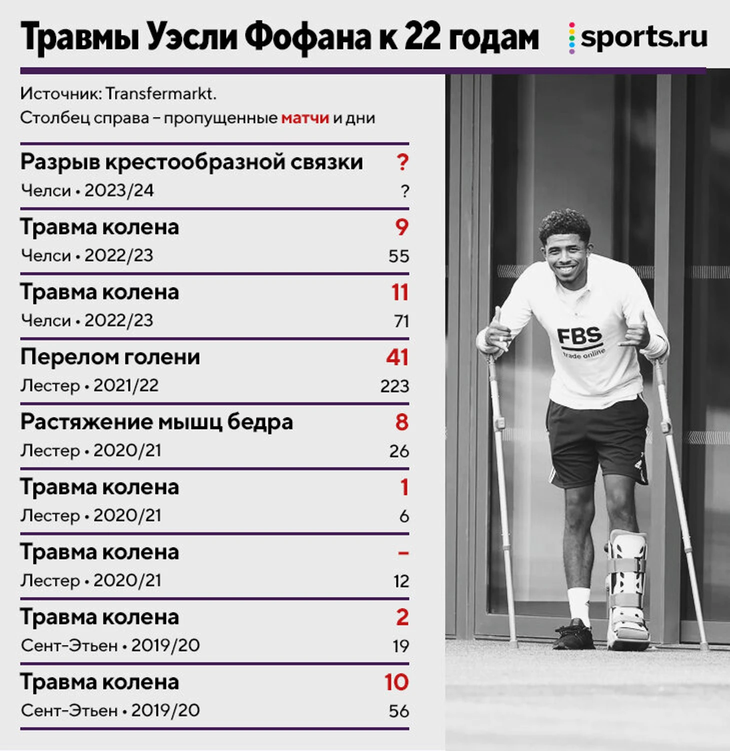 Фофана не позавидуешь: к 22 годам собрал уже такое количество травм, которое некоторые не получают за всю карьеру.