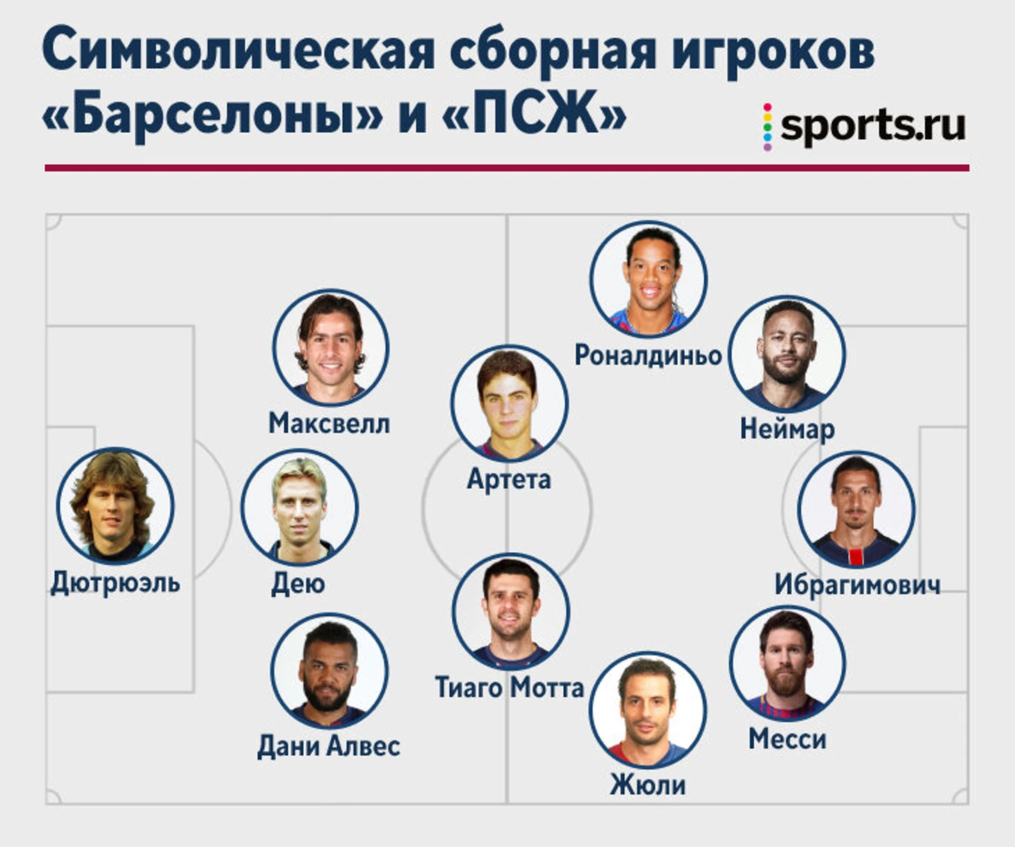Сборная тех, кто играл за «Барсу» и «ПСЖ». С Месси, Неймаром, Иброй и Роналдиньо