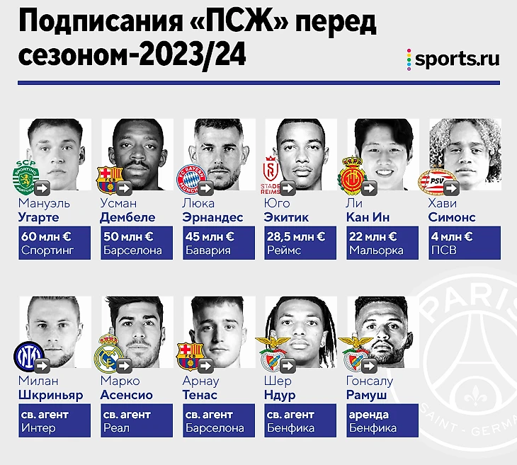 Выкупили и 21-летнего нападающего Юго Экитика, он в прошлом сезоне был в аренде. Будущее Юго все еще туманно: «ПСЖ» готов с игроком расстаться. На позицию основного центрфорварда из «Бенфики» пришел Гонсалу Рамуш – аренда с правом выкупа в следующем сезоне. Фабрицио Романо сообщал, что выкуп обязательный, за 65+15 млн евро. RMC Sport писал, что полноценный переход пока строго не закреплен, но его условия таковы, что выполнить их и тем самым активировать пункт будет очень просто.