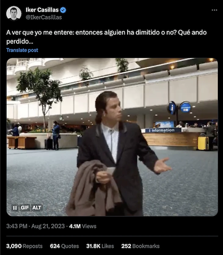 Тем временем Икер Касильяс, который в 2020-м соперничал с Рубиалесом за пост главы федерации, задался главным вопросом: «Так кто-то уже подал в отставку или нет?»