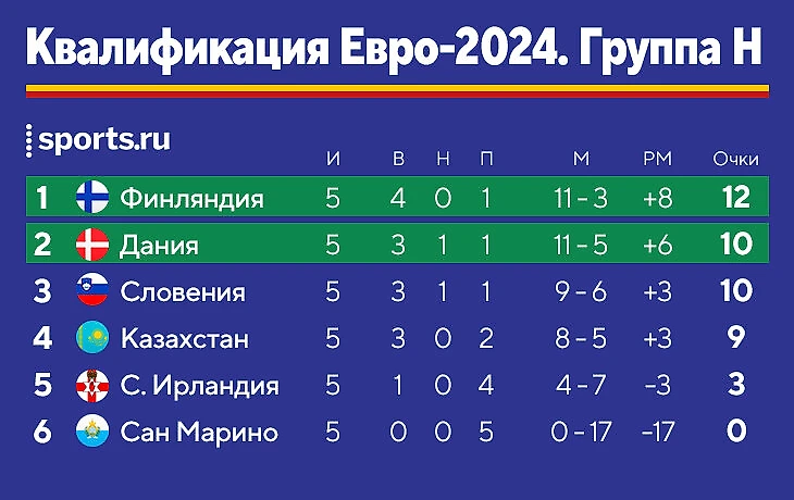 Казахстан обидно проиграл финнам – могли брать ничью, но пропустили на 78-й. Финляндия единолично возглавила группу, но у Казахстана еще неплохие шансы съездить на крупный турнир: хоть пока только четвертое место, при высокой плотности и трех победах за четыре матча бороться можно.