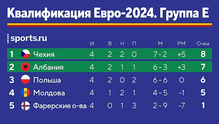 Чехи не смогли додавить Албанию – закончили 1:1, несмотря на игровое преимущество хозяев. Албанцы забили единственным ударом в игре и остались на промежуточно проходном втором месте. В воскресенье ключевой для поляков и Албании личный матч в Тиране.