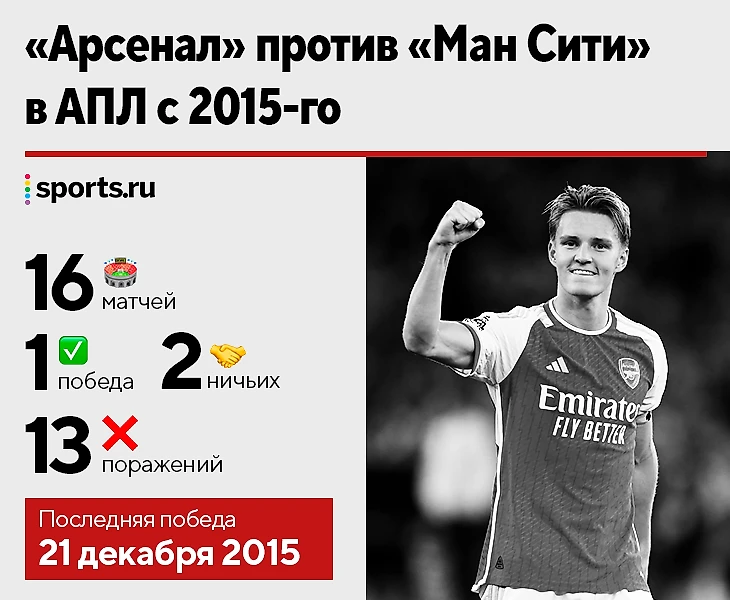 Для «Арсенала» это тоже долгожданная победа: последний раз «канониры» обыгрывали «Сити» в АПЛ в далеком 2015-м. Тогда победные мячи забили Тео Уолкотт (завершил карьеру) и голкипер «Милана» Оливье Жиру. Тренировал «Арсенал» даже не Унаи Эмери, а еще Арсен Венгер – вот так давно это было.