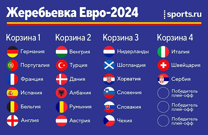 Ближайшая важная дата – 2 декабря. Состоится жеребьевка группового этапа Евро-2024, где 21 сборная узнает соперников, но в группы будут включены и пока безымянные победители стыков из сеток А, В или С.