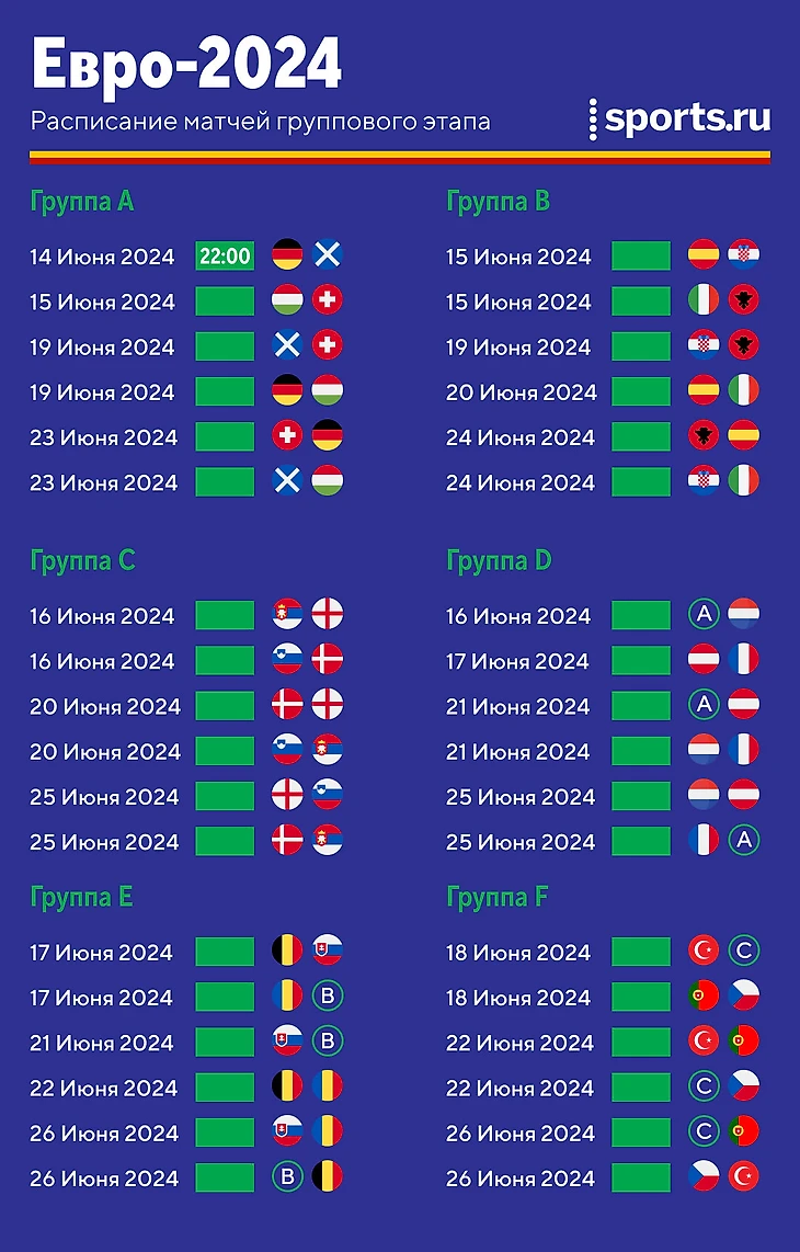 Состоялась жеребьевка группового этапа чемпионата Европы-2024.