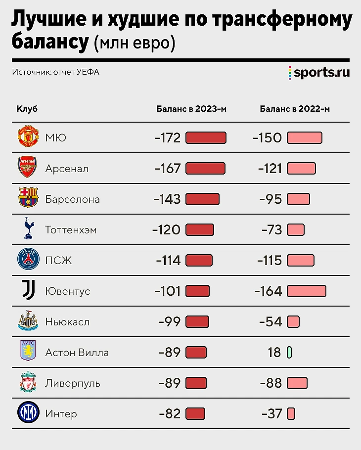 ● Два клуба смогли сократить отрицательный баланс. Не считая уже упоминавшегося «ПСЖ», хвалим «Ювентус».