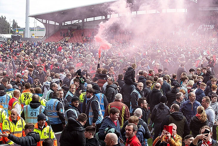 В решающей игре «Рексхэм» даже не дал болельщикам повода для переживаний: разнес «Форест Грин Роверс» 6:0. После финального свистка фанаты уже привычно высыпали на поле.