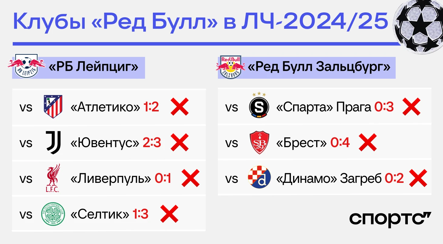 Провал «Ред Буллов» в ЛЧ: 0 очков у «Лейпцига» и «Зальцбурга». Так встречают Клоппа