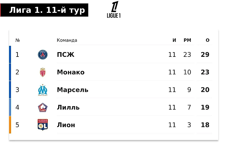 «Марсель» с шестью победами, двумя ничьими и тремя поражениям идет третьим в таблице. «Лилль» мог, но не подвинул марсельцев на четвертое место по итогам тура.