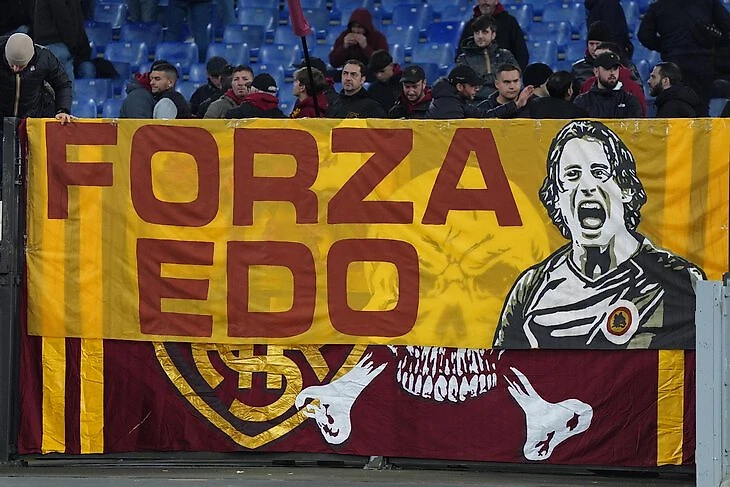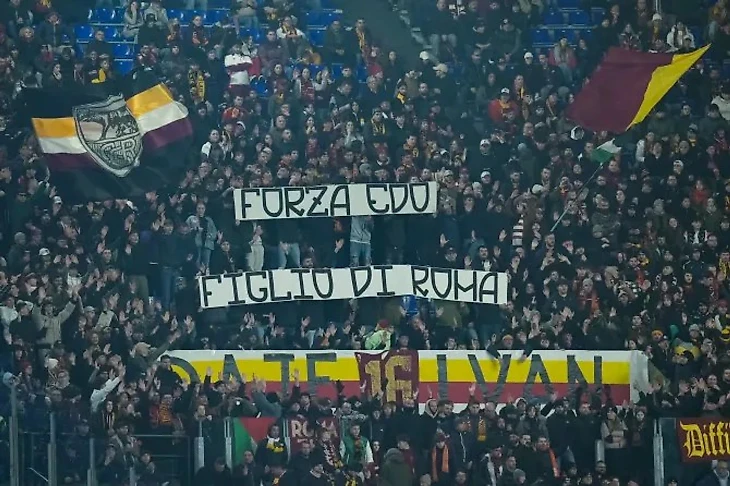 Фанаты растянули на трибунах баннер: «Держись, Эдо. Сын «Ромы».