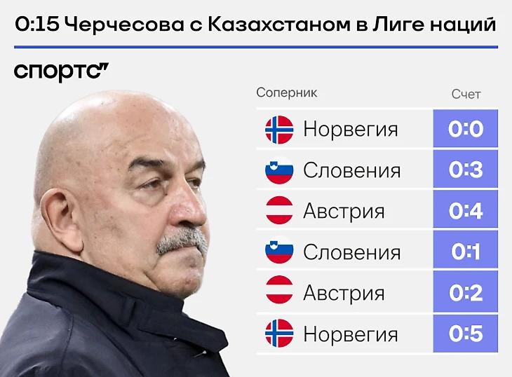 Sport24 писал, что со стороны главы Федерации футбола Казахстана Марата Омарова Черчесову была поставлена задача выйти на ЧМ-2026. Черчесов сказал, что сборную нужно перестраивать, так что для выполнения таких глобальных задач потребуется время. А еще – допустил, что отбираться на ЧМ команде придется в лучшем случае через стыки. Итоги разговора не понравились Омарову. В группе у Казахстана – Бельгия, Уэльс, Северная Македония и Лихтенштейн.