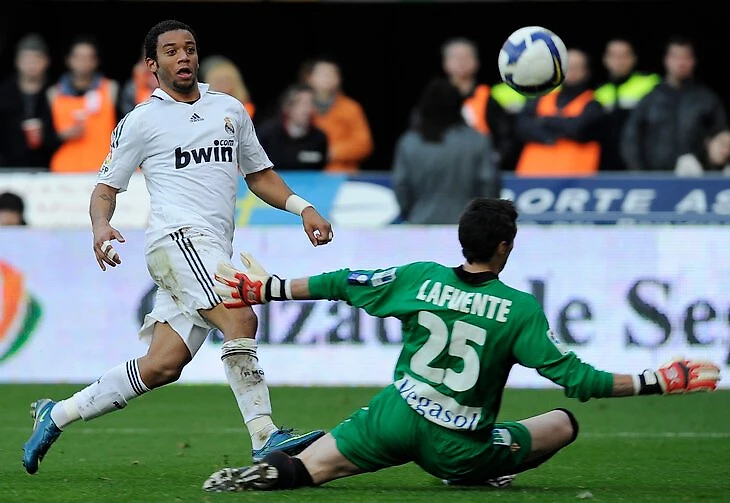 Марсело забил первый мяч за «Мадрид» только в феврале 2009-го – поучаствовал в разгроме хихонского «Спортинга» (4:0).