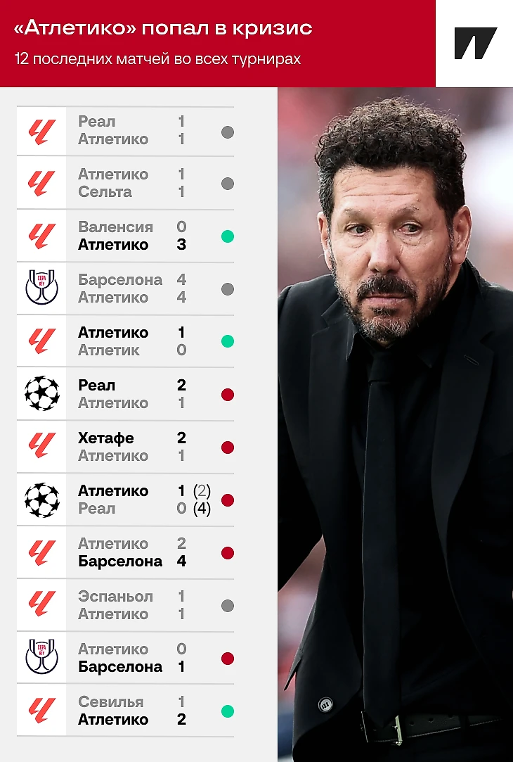 Для Симеоне принципиальный матч: в октябре хоть и проиграли всего 0:1, выглядели кошмарно.