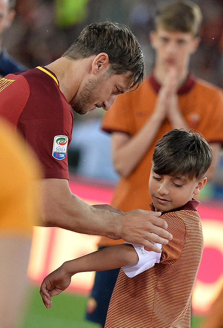 Тотти прощался с «Ромой» на глазах 59 тысяч зрителей. Франческо со слезами шел к центру «Стадио Олимпико», где его ждал 11-летний Альмавива. Мальчик протянул левую руку – и получил капитанскую повязку от легенды. Следом Тотти обнял Маттиа и прошептал ему несколько напутственных слов.