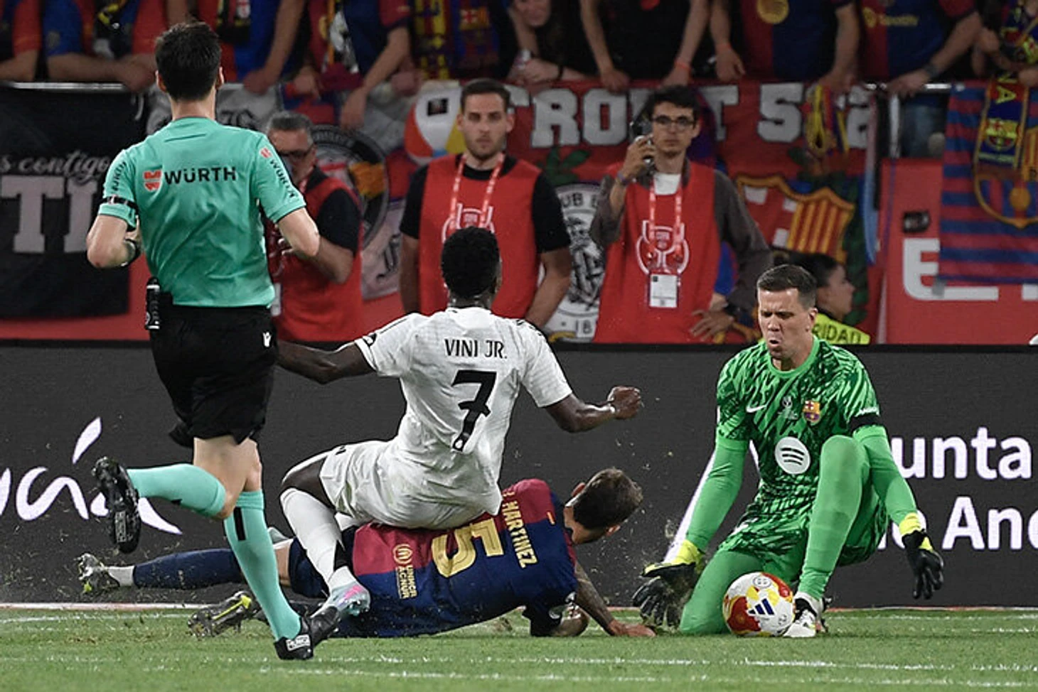 В концовке первого тайма Винисиус упал в штрафной «Барселоны» после столкновения с Войчехом Шченсным и Иньиго Мартинесом. Арбитр Рикардо де Бургос Бенгоэчеа пенальти не назначил, так как с помощью ВАР зафиксировал у бразильца офсайд.