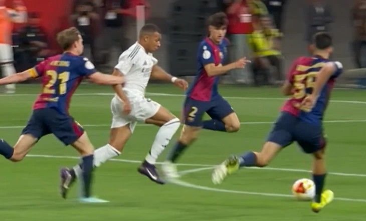 Еще один эпизод, который не понравился «Реалу», произошел перед голом Килиана Мбаппе со штрафного. На 67-й минуте Френки де Йонг придержал француза недалеко от штрафной, за что получил желтую карточку.