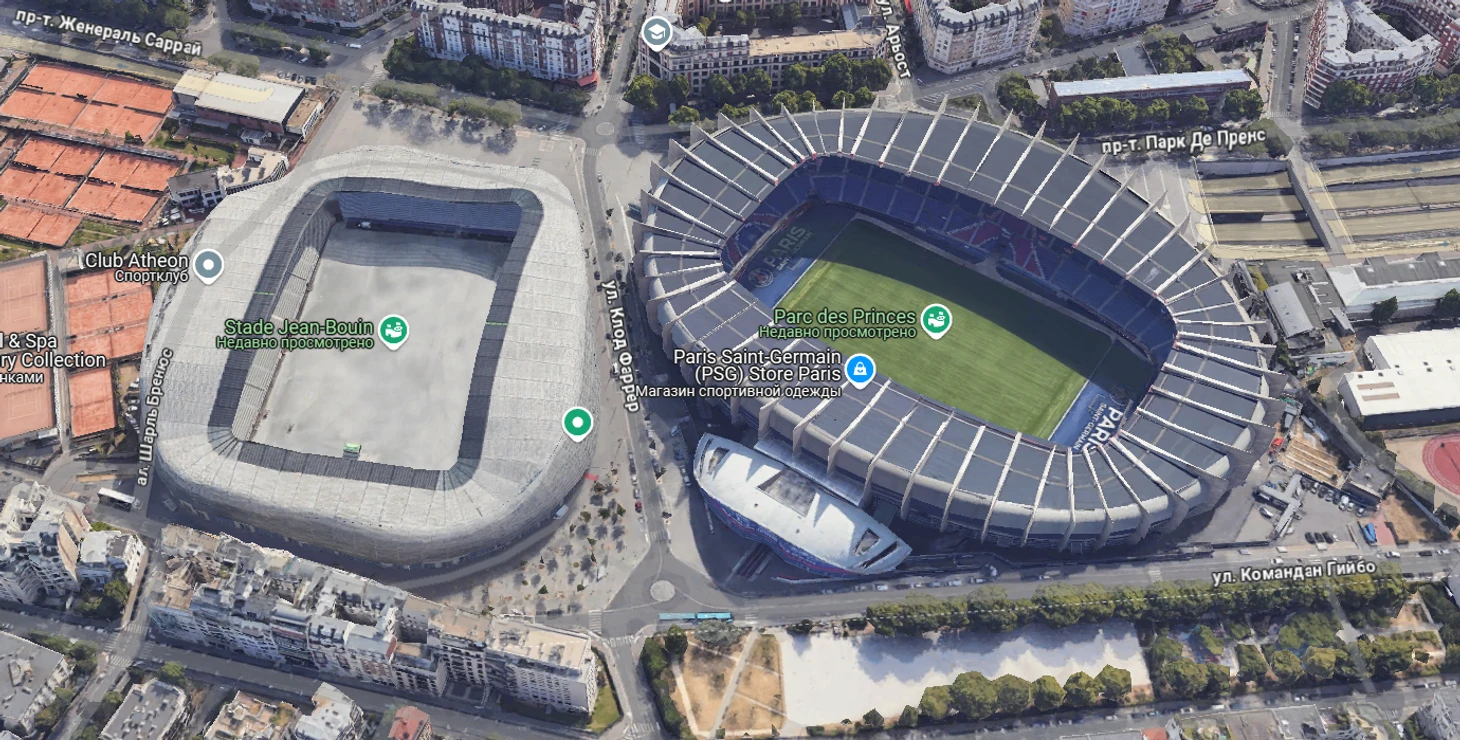 Смотрите, как близко стадионы «Парижа» и «ПСЖ»