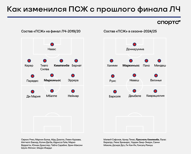 Впечатление, что тот ковидный финал был так недавно, но, например, Уоррену Заиру-Эмери в 2020-м исполнилось лишь 14 лет, а Дезире Дуэ – 15. Времени на обновление состава и смену концепции достаточно. Теперь совсем другие принципы, нет следа от мегадорогих (по покупкам и контрактам) Лионеля Месси, Неймара и Килиана Мбаппе.