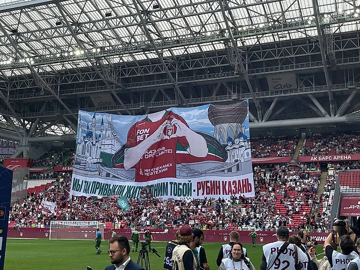 Перед матчем фанаты «Рубина» потроллили «Спартак». Взяли строчку из любимой песни москвичей «Знаешь ли ты» и нанесли на перфоманс. И подразнили соперника, и признались в любви «Рубину».