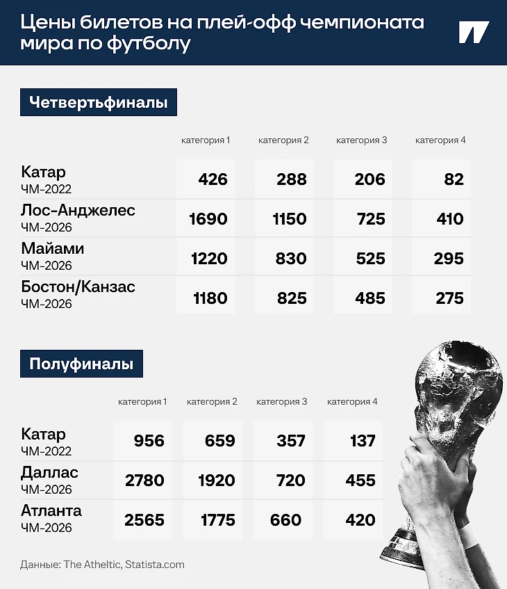 📈 А так можно увидеть рост в среднем в два-три раза относительно стоимости билетов на те же стадии катарского ЧМ.
