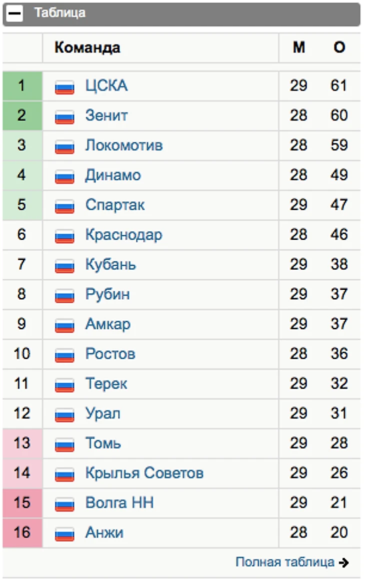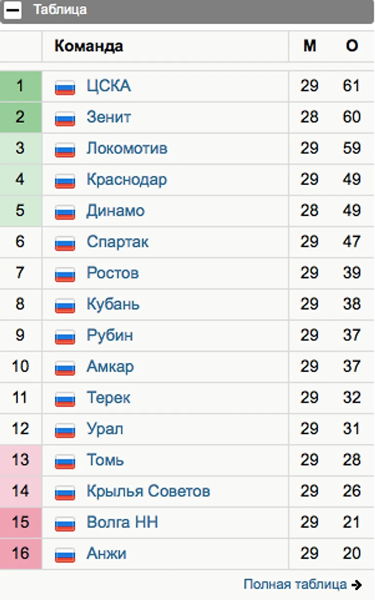 19.04. Таблица чемпионата России #прямосейчас: