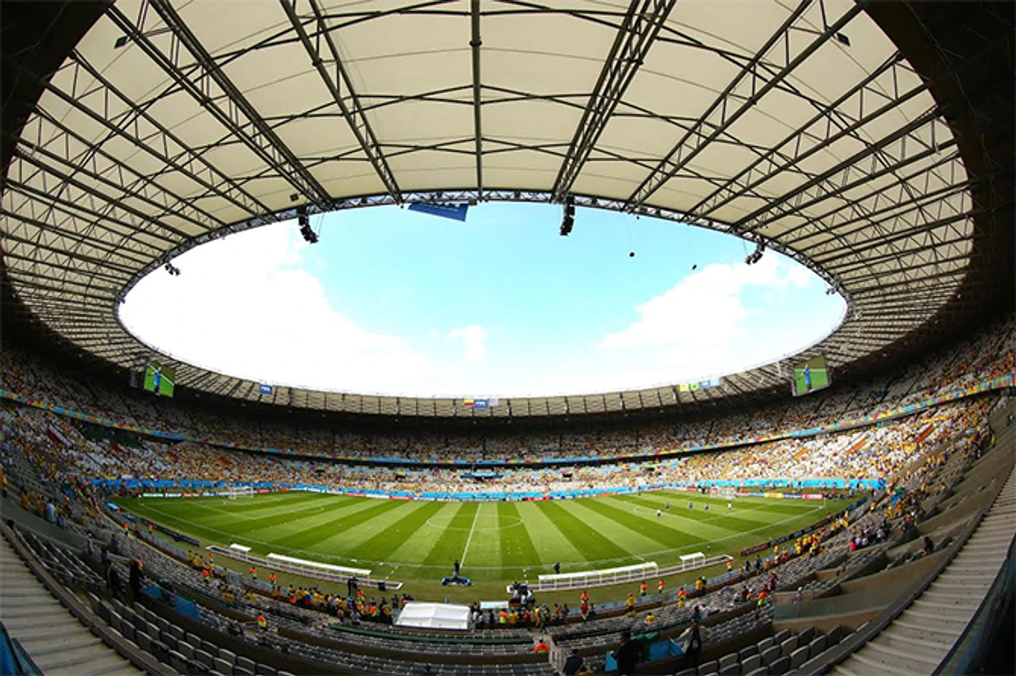 В Белу-Оризонти был реализован такой же проект, как в свое время на Олимпийском стадионе Берлина – улучшение внутренней инфраструктуры объекта при сохранении внешнего облика. Стадион был построен в 60-х годах, фасад является памятником архитектуры и трогать его, разумеется, было нельзя. Поэтому мы сосредоточились на том, что находится внутри – в буквальном смысле мы построили стадион в стадионе. Да, и в дополнение к имеющейся натянули новую, как бы дополнительную крышу, которая защищала зрителей от дождя.