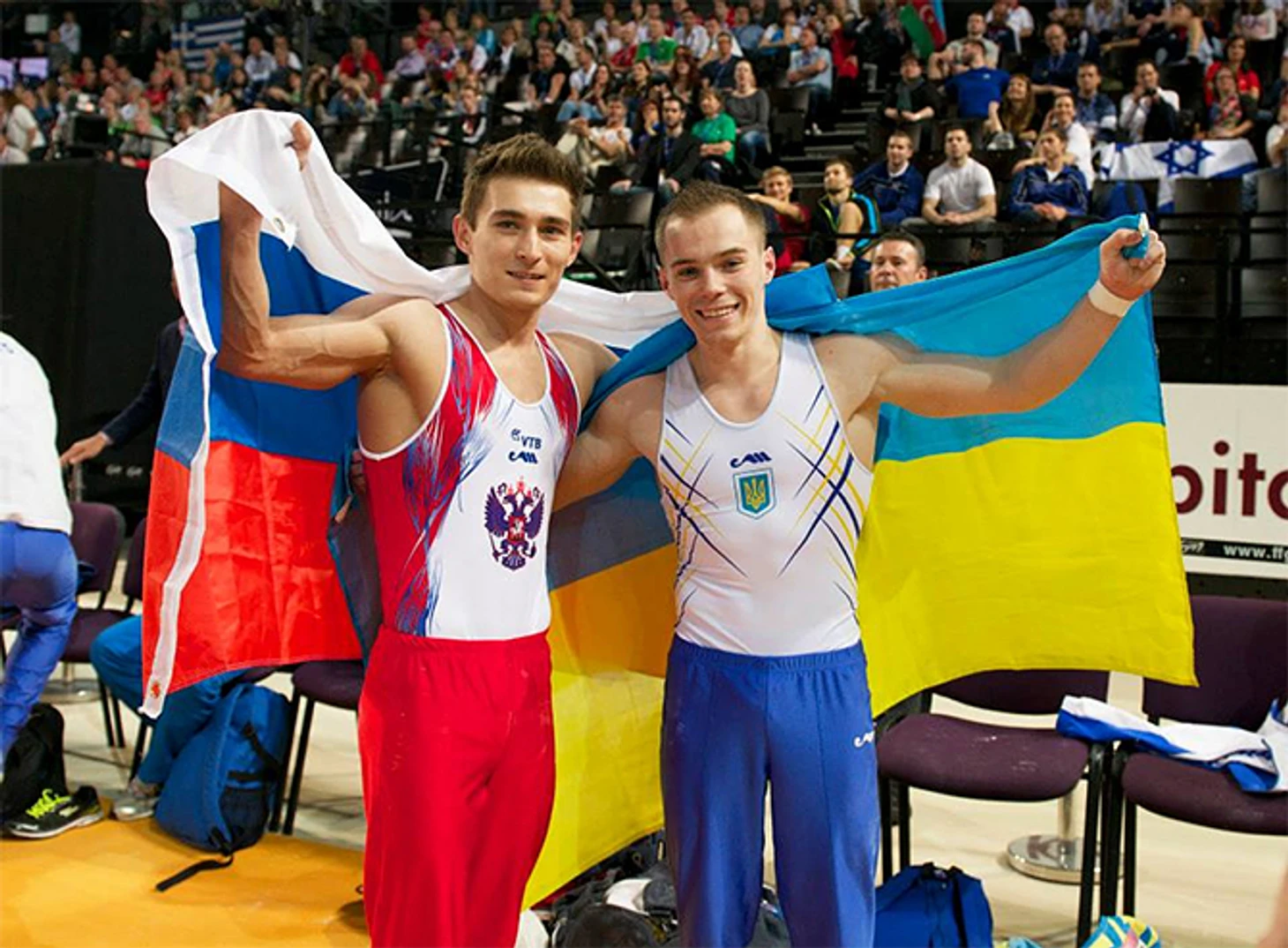 В Монпелье гимнастов разделил балл: золото у украинца, серебро – у россиянина. И учитывая напряженные политические отношения между странами-соседями, спортсмены в высшей степени корректно и правильно повели себя после соревнований. Они обнялись и долго вместе ходили со своими национальными флагами.
